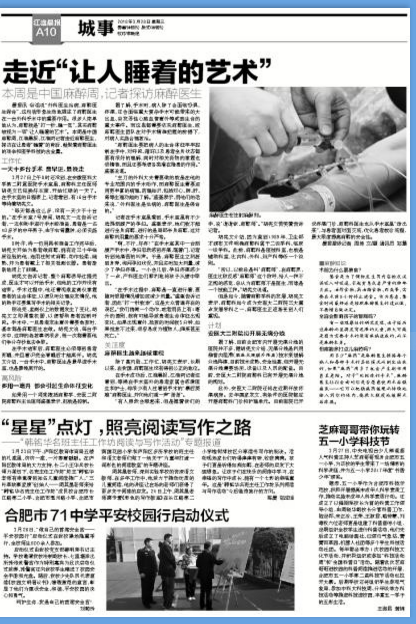 在手术成功后,江淮晨报、江淮网记者注意到,等候在手术室外的患者家属会感激医生和护士,却很少有人注意到手术的“幕后英雄”麻醉医生,并向他们道一声“谢谢”。