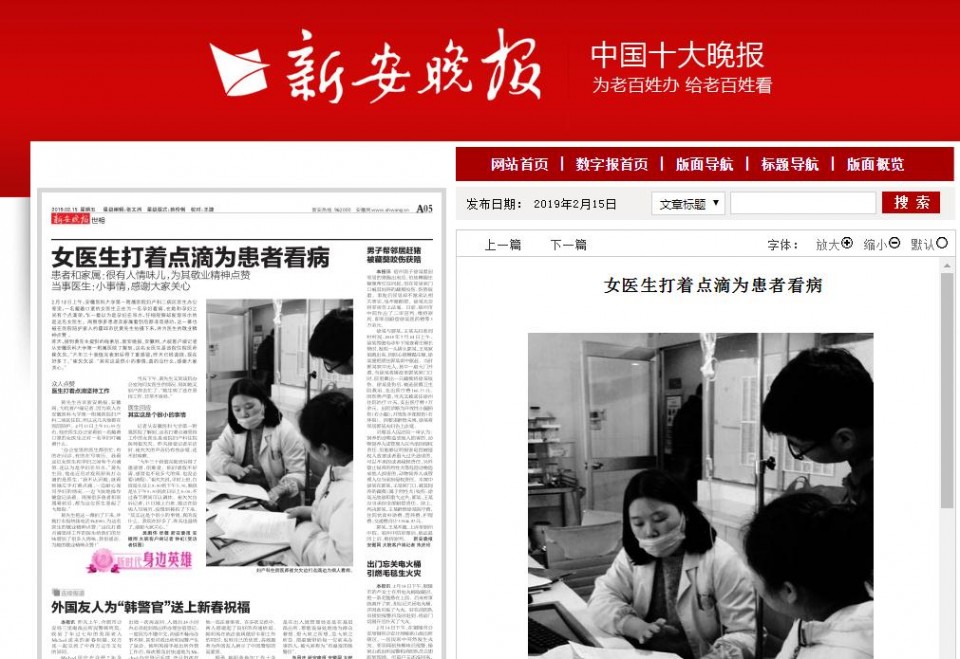 黄先生把这一幕拍了下来,并拨打本报热线电话962000,为这名医生的敬业精神点赞:“这位打着点滴坚持工作的医生给我们的年味增加了很多人情味,我很感动,为她的敬业精神点赞!”