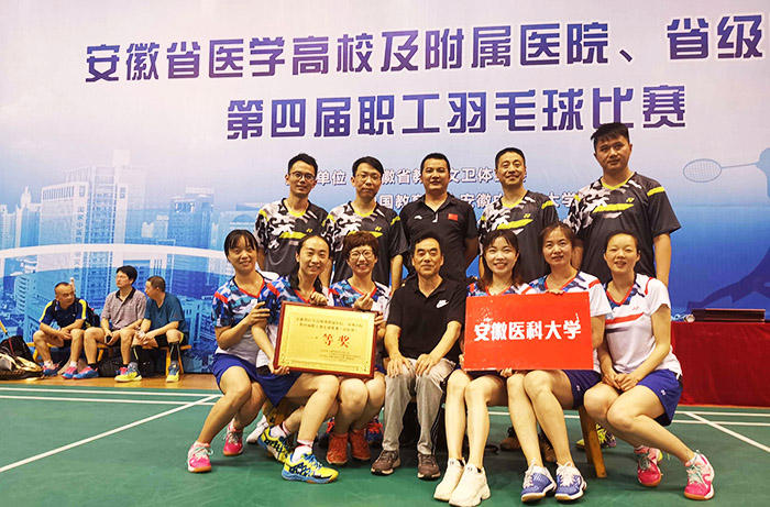 6月14日至15日,安徽省医学高校及附属医院、省直医院第四届职工羽毛球比赛在安徽省体育馆举行。我校代表队再次续写辉煌,获得一等奖(第一名)佳绩。