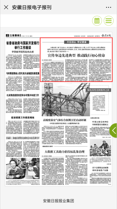 安徽日报:宣传身边先进典型 推动践行初心使命