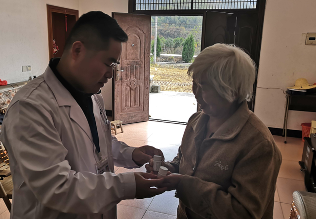 许存欣说:“我兼顾了3个村,我们每个月都要下去的,为他们量血压、量血糖,进行一系列的健康指导。跟他聊聊家常,让他们心情开朗,高兴一点。”为了更加全面地掌握村民的健康状况,不遗漏掉一个人,有的时候在晚上赶到村民家里,为村民做健康体检。