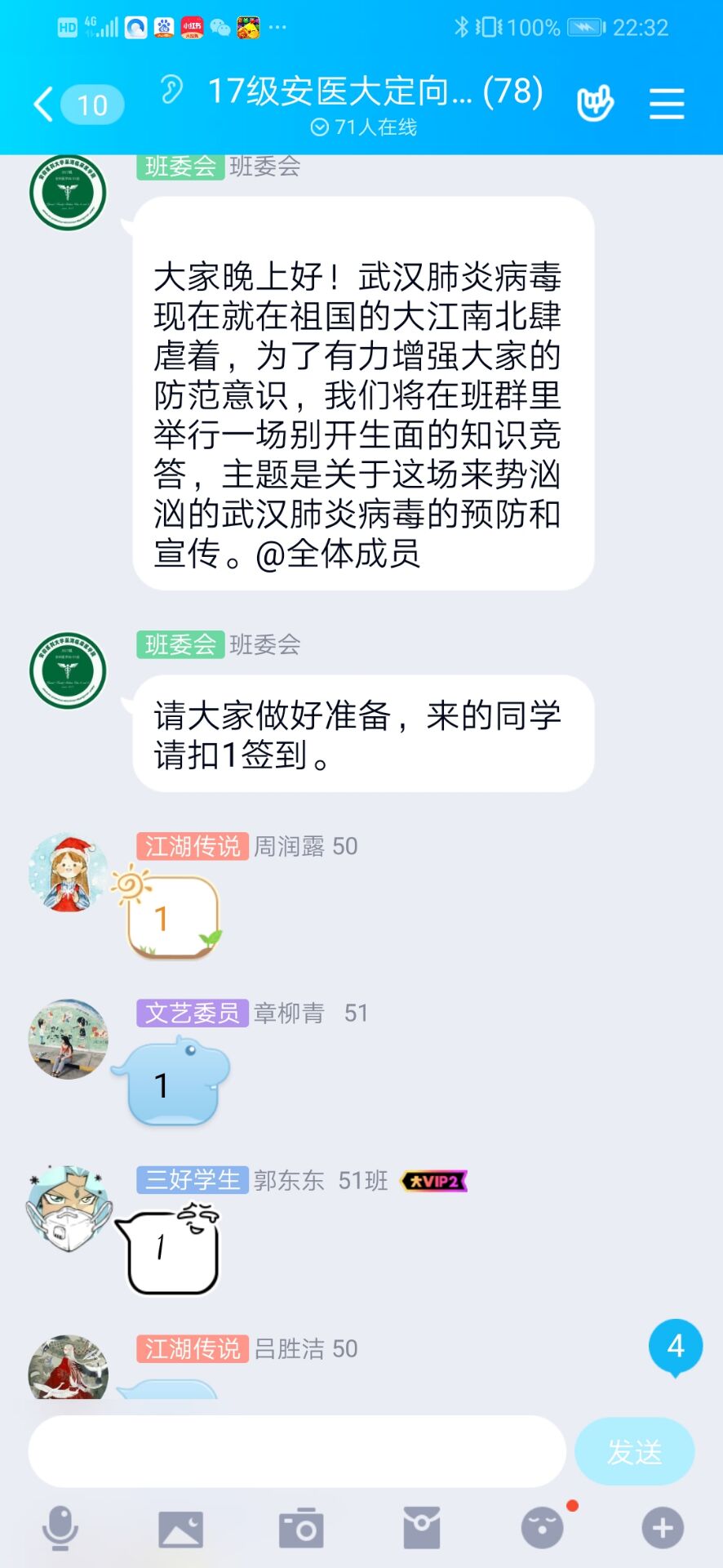 各学院辅导员将防疫工作与思政育人相结合,发挥医学专业特色,引导学生将专业所学转化为宣传动能,组织有特长的同学创作抗疫公益歌曲《请愿书》,歌曲及MV彰显了学校爱国爱民、献身人类健康的优良传统;创作《我与公卫有约——我眼中的新冠肺炎》《不一样的春节》等科普文章和视频,制作《今天,你防疫了吗?》等宣传漫画,并通过校、院公众号平台陆续推送“洗手歌”“如何正确戴口罩”“学穿防护服”等小视频,在“实战”中化理论知识为公共服务。此外,举办“众志成城,抗击疫情”——新型冠状病毒在线知识问答竞赛,向同学们普及有关新冠肺炎的发病症状、传播途径和预防要点,积极鼓励大家向家人普及疫情动态,消除恐慌,树立科学防控观念,弘扬安医精神,唱响安医故事,凝聚安医力量,以实际行动践行初心使命。