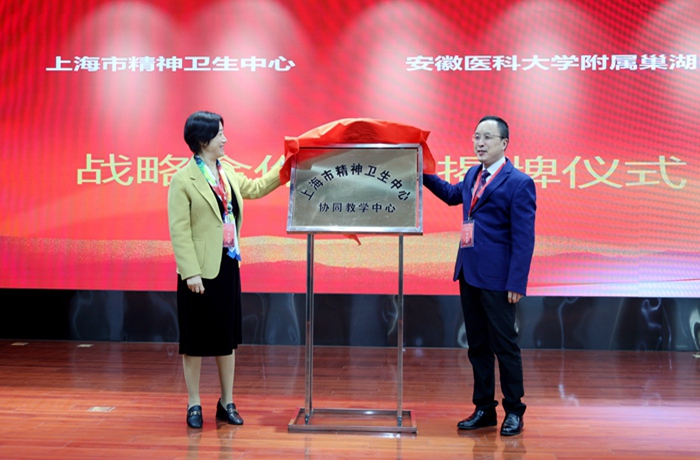 开幕式上,上海市精神卫生中心院长赵敏简要介绍了该中心的基本情况,附属巢湖医院党委书记刘颀简要介绍了医院72年的办院历史及精神科50多年的发展历程。双方签订战略合作协议,并共同为“上海市精神卫生中心协同教学中心”揭牌。