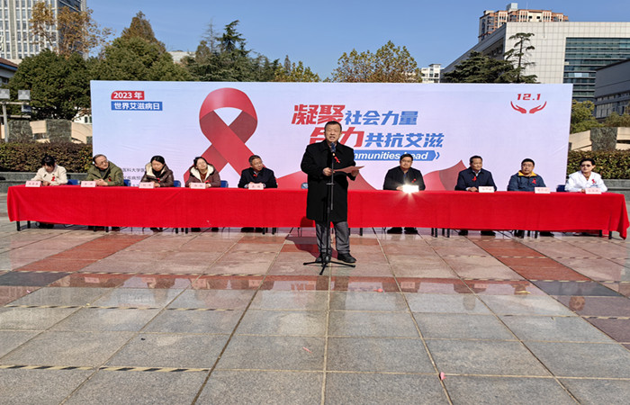 肖圣龙在致辞中表示,在全社会的共同努力下,艾滋病疫情持续控制在低流行水平,但其仍然是一种可防不可治的严重传染病。我校作为教育部45所艾滋病防控试点工作高校,要切实贯彻落实党的二十大精神,持续发挥带头作用和示范效应,积极凝聚社会力量到艾滋病的防控宣传工作中来,确保将防艾措施落实到位,推动我校艾滋病防治工作高质量开展,营造全社会共同防艾的良好氛围。