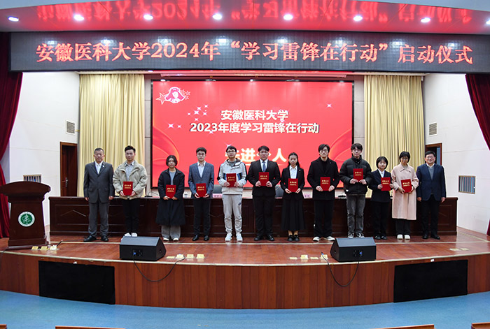 启动仪式上,顾家山、肖圣龙共同为2023年度“学习雷锋在行动”先进集体和先进个人代表颁发了荣誉证书。安徽省公共卫生临床中心(一附院北区)骨科常俊同志、生命科学学院2021级生物科学专业张廉民同学分别作为先进集体、先进个人代表发言。2023年度“学习雷锋在行动”主题活动中,学校共有22个集体以及32名师生获得先进表彰。
