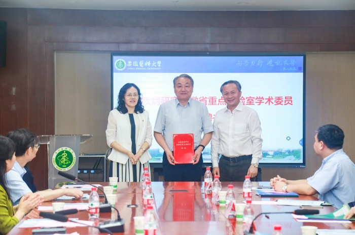 5月26日,我校口腔疾病研究安徽省重点实验室召开学术委员会成立大会暨学术年会,中国科学院院士王松灵、我校校长翁建平出席并致辞。副校长余永强主持会议,安徽省科技厅二级巡视员王静出席并讲话。翁建平、王静共同为与会委员颁发聘书。