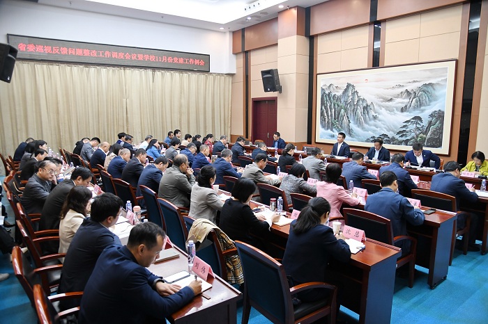 11月15日下午,校党委书记王琦主持召开省委巡视反馈问题整改工作调度会议暨11月份党建工作例会并讲话,校党委副书记、第一附属医院党委书记徐朝阳,学术副校长张智,校党委常委李阳新、顾秀平出席会议。