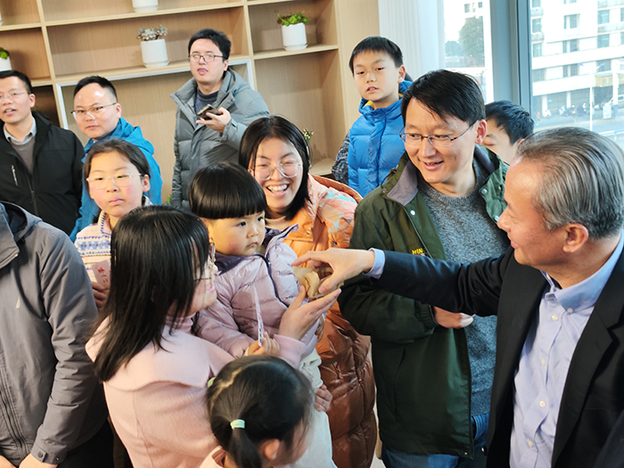 在抽奖环节中,翁建平引导中奖的孩子们留下获奖玩具的同时将糖果分享给在场的其他人。“我们常说‘赠人玫瑰,手有余香’,如果从小就能学会分享,这对孩子本身和家庭都有很大意义。”翁建平表示,希望通过这样的活动,增强职工对单位的亲切感,提升工作效率,尤其是让年轻教职工在孩子陪伴下更加安心工作。