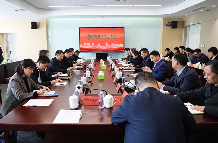 3月19日,合肥市副市长何逢阳一行到我校第一附属医院南区走访调研。校党委书记王琦,一附院党委副书记、院长孙倍成陪同调研。市政府副秘书长杨龙,市卫健委主要负责人,肥西县政府、蜀山区政府、市教育局、市财政局、市自然资源和规划局、市城乡建设局、市医保局、市公交公司分管负责人等参加调研。